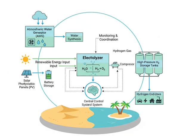 La revista especializada en Energías Renovables, ‘Energética XXI’, en su edición de Noviembre, se ha hecho eco del Proyecto Nebaw, el nuevo electrolizador Autónomo basado en agua atmosférica), que desarrolla un sistema integral de roducción de hidrógeno verde, sin consumo de agua externa, combinando electrólisis de membrana bipolar (BPM), captación de agua atmosférica y energía solar fotovoltaica autónoma.